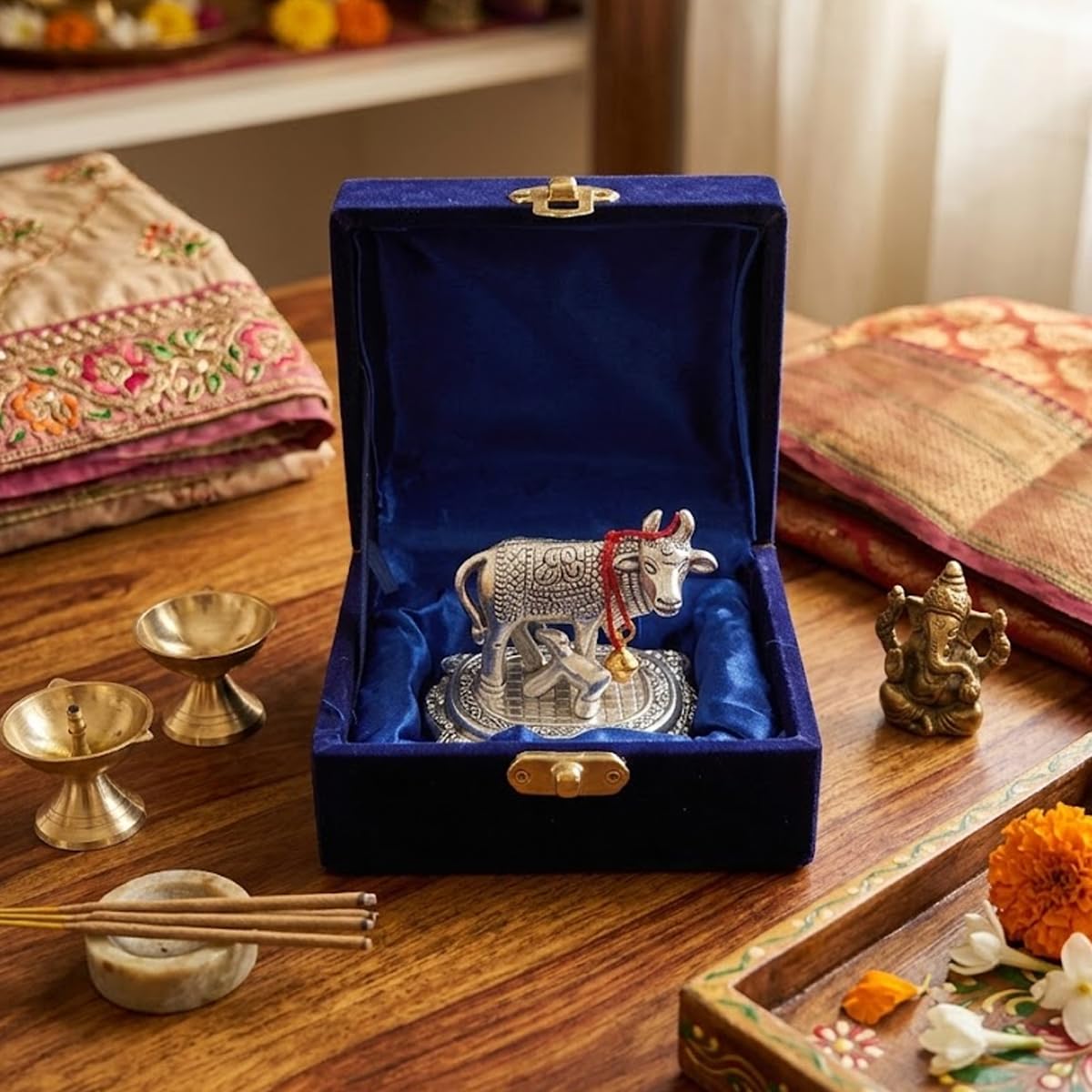 - Package Contents: 1 Kamdhenu Cow and Calf Statue with Velvet Gift Box.