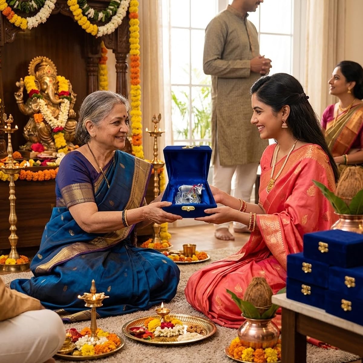 | Description | The Saugat Traders Kamdhenu Cow and Calf Idol with Box is a beautifully crafted religious idol that makes for a thoughtful and meaningful return gift for any auspicious occasion. The cow and calf hold deep religious significance in Indian culture, symbolising prosperity, nurturing, and divine blessings, making this idol a truly special keepsake. This compact yet detailed figurine is ideal for placing on a home altar, mandir shelf, or as a decorative showpiece, making it convenient to distribute as return gifts in bulk. Crafted in India, this statue reflects traditional artistry and attention to detail. Its modest size makes it easy to display in any corner of the home while adding a touch of spiritual elegance. Stock up on these delightful religious idols and make every celebration memorable with a gift that carries both cultural significance and heartfelt warmth. Cow for return gifts, cow and calf return gifts in bulk, cow with calf statue return gifts, cow with calf statue return gifts, cow and calf showpiece return gifts, cow and calf statue for pooja return gift, Bulk return gifts for pooja, housewarming puja gifts, baby shower, housewarming ceremonies, haldi functions, mehandi ceremony, shaadi return gifts, sangeet ceremony, satyanarayan pooja, varalaxmi pooja return gifts, return gift for grahapravesam in bulk, graha pravesh return gift, half saree function, dhoti ceremony, religious functions, festivals, and other auspicious occasions. |