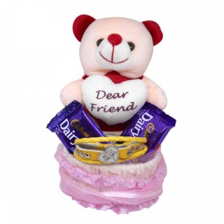 Gift for Friend - Soft Toy, Friendship Band & Basket with Chocolate