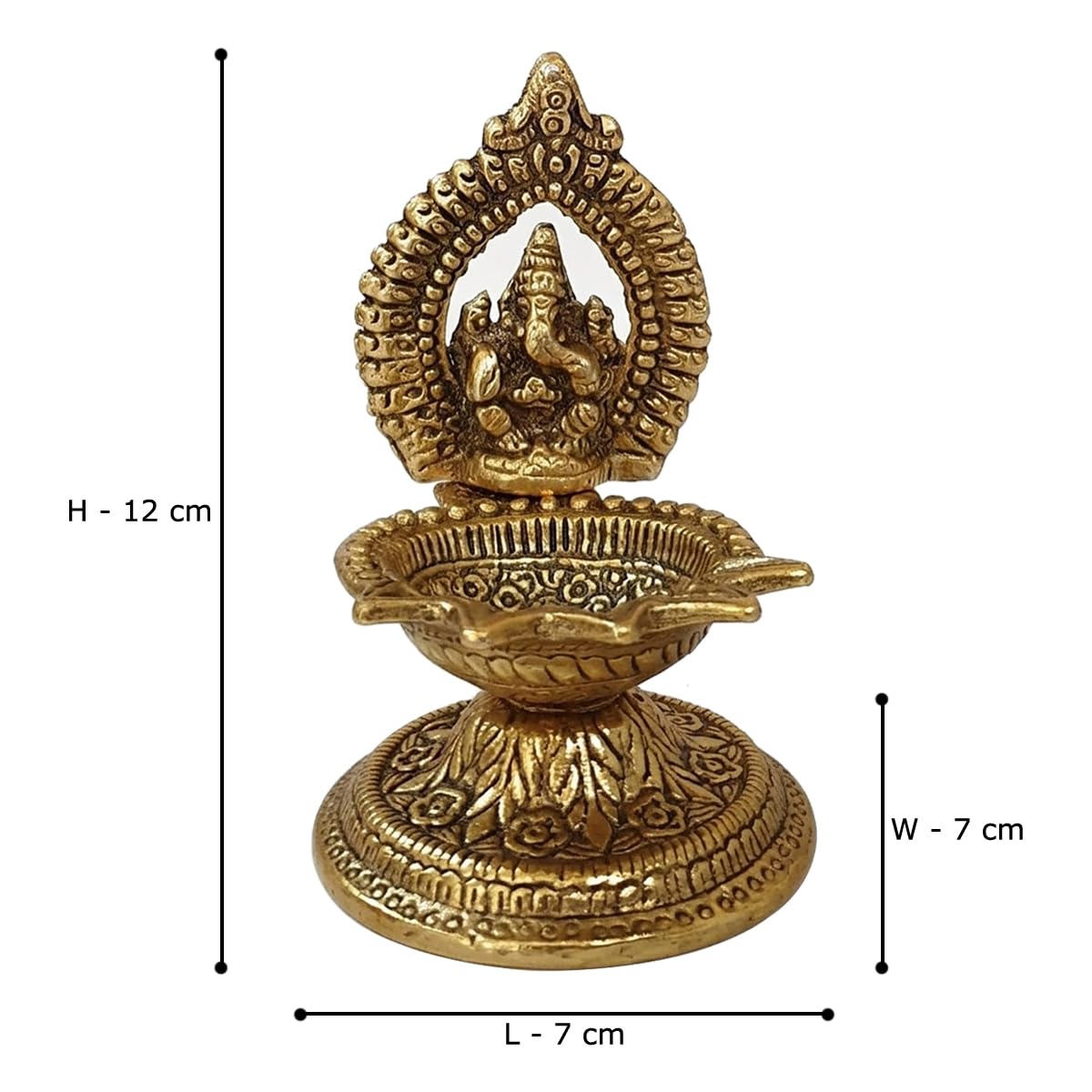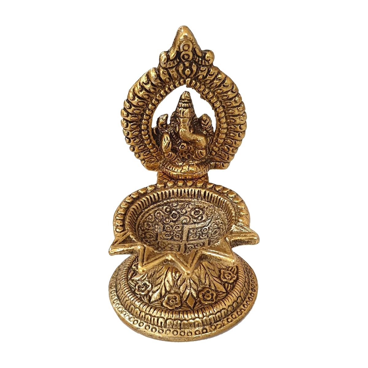 Brass Ganesha Idol with Diya for Home Temple, Pooja | Good Luck Gift