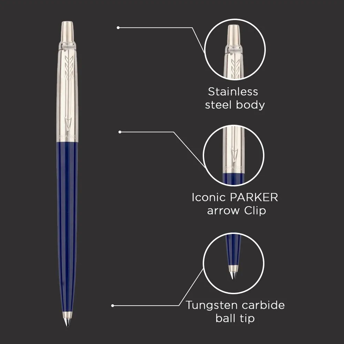 - Parker Jotter Standard Ball Pen. Fine Point, Blue Ink. Refillable with parker Quinkflow Ball Point Refill.