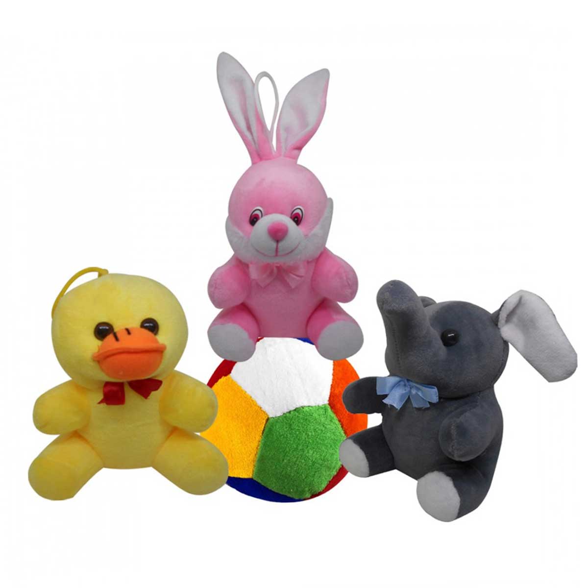 Stuffed Soft Toy Combo Of 4 Duck, Elephant, Rabbit And Ball