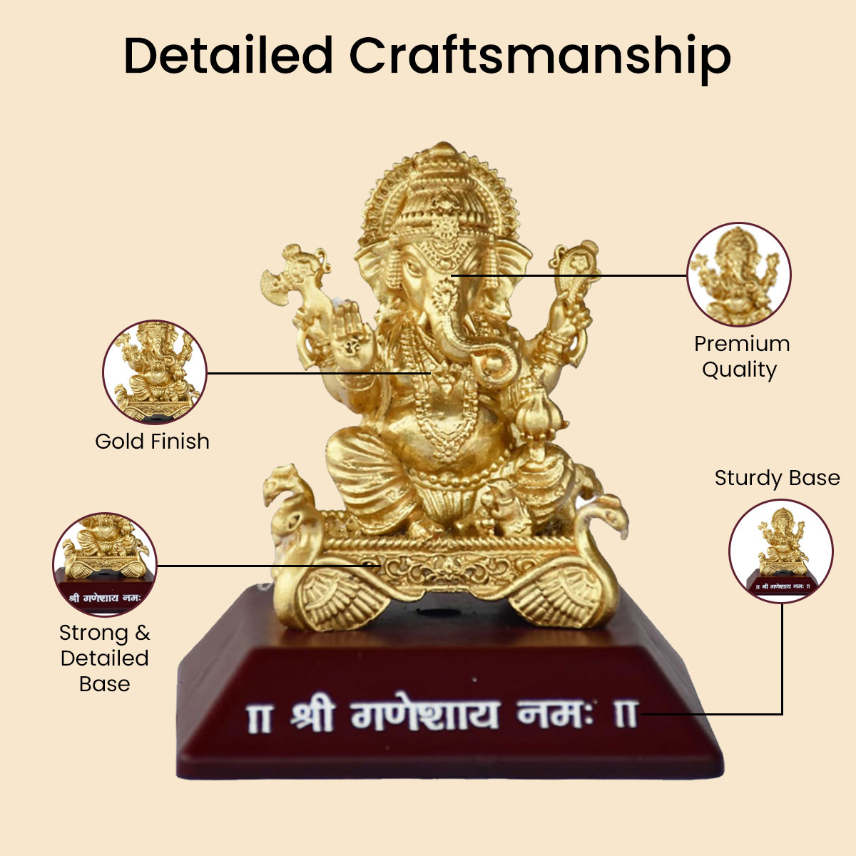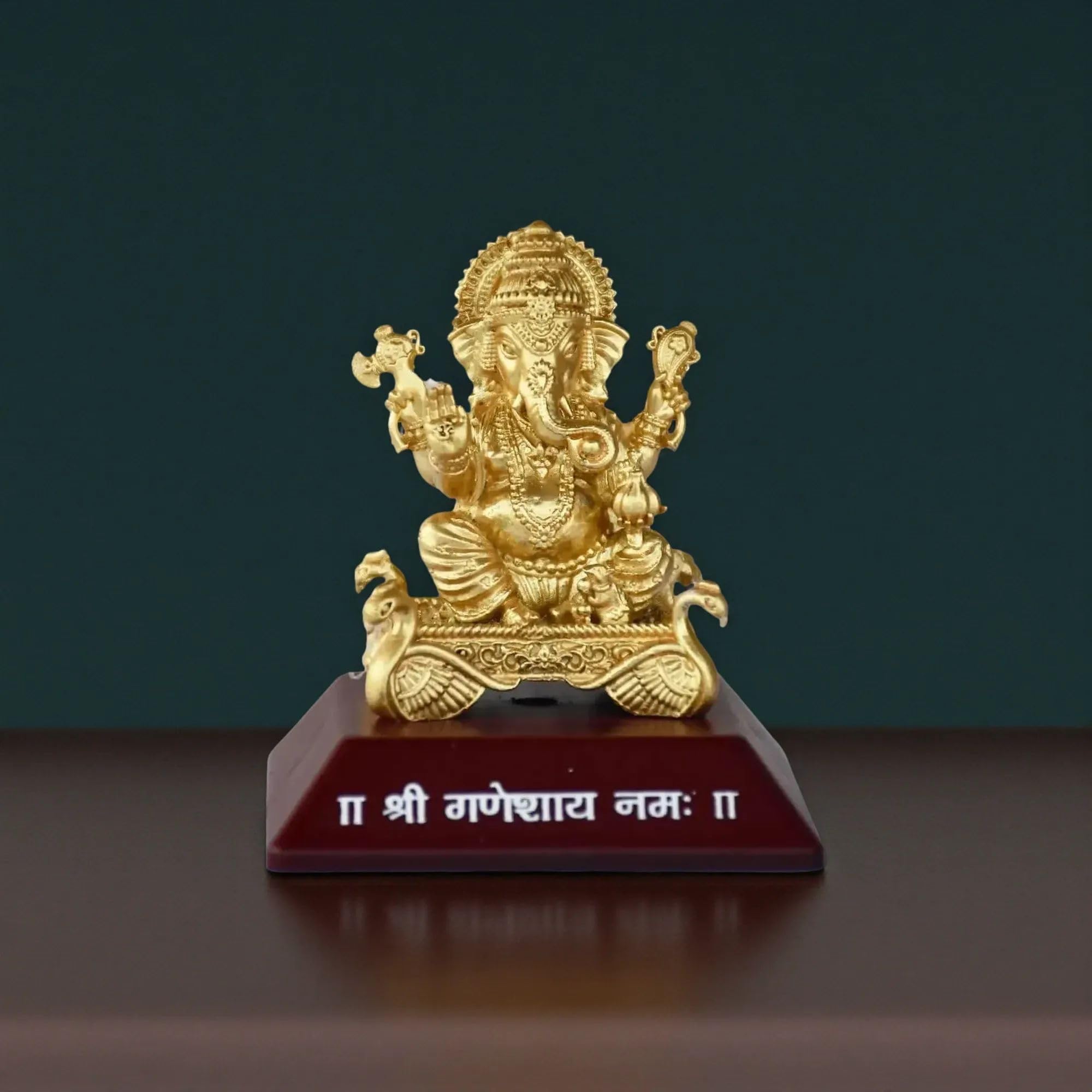 Metal Golden Ganesha Idol for Car Dashboard and Home Decor - Good Luck Gift