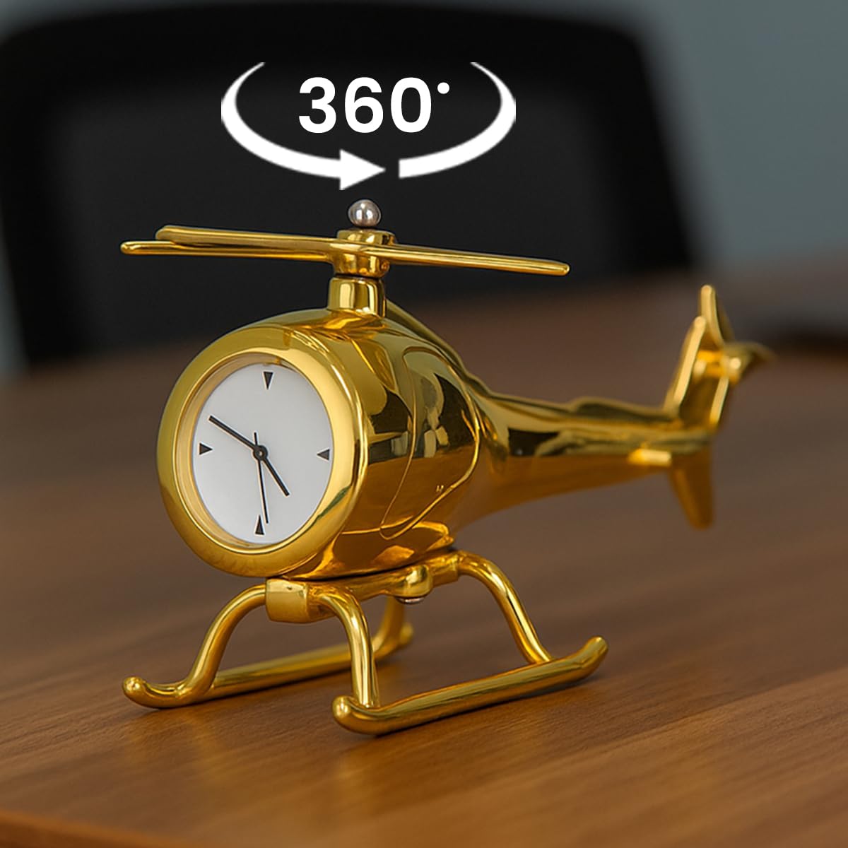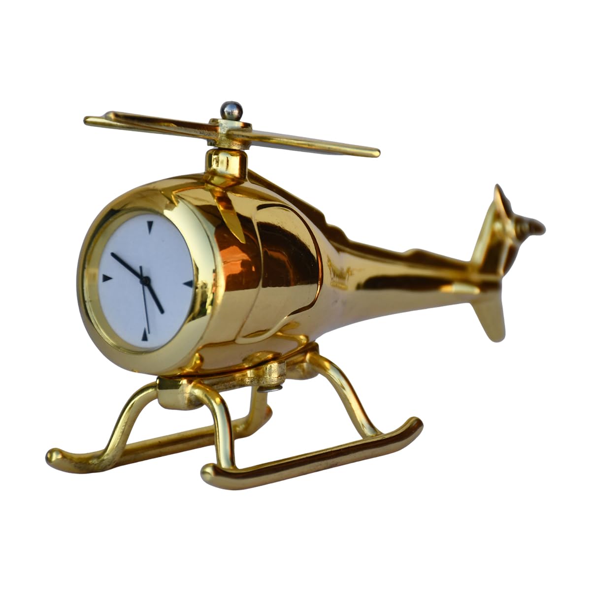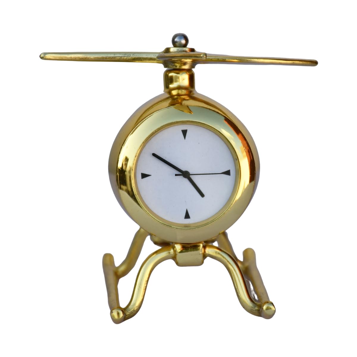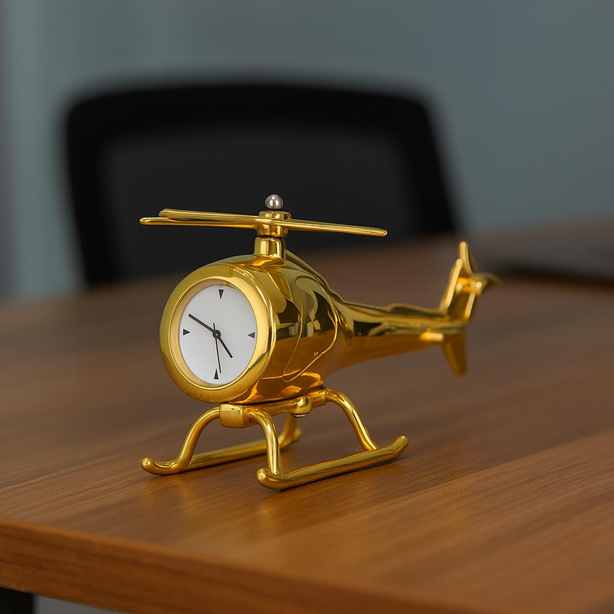 - Unique helicopter-shaped metal table clock that doubles as an elegant showpiece and desk accessory. Functions both as a timepiece and decorative showpiece, adding a sophisticated touch to any workspace.
