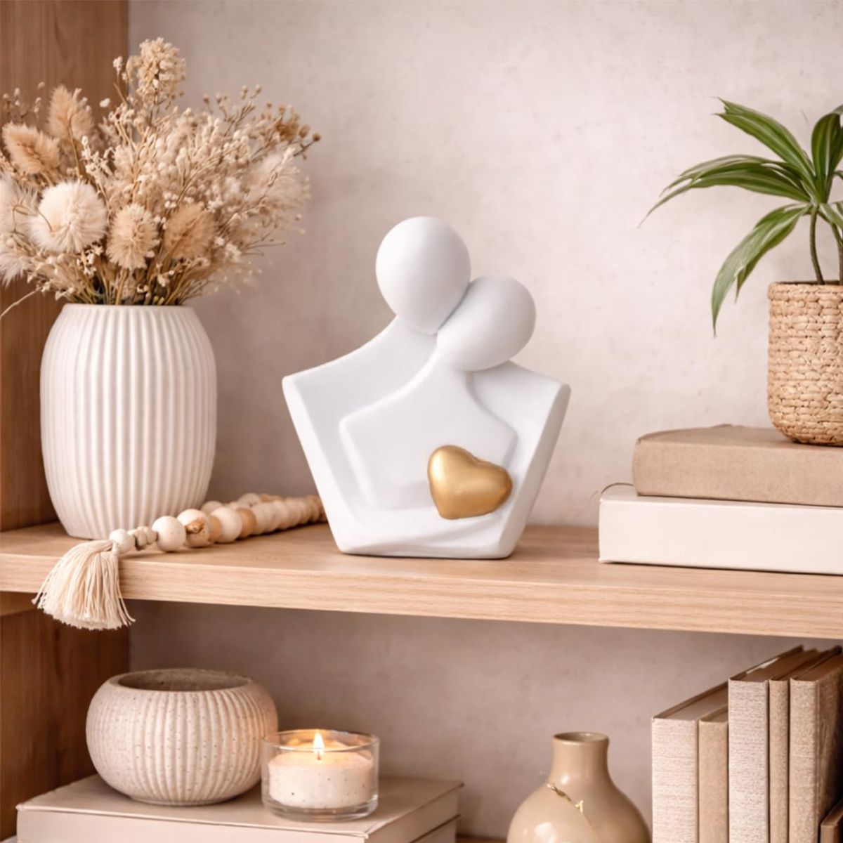 - Beautifully sculpted miniature statue capturing tender moments with intricate detailing and artistic craftsmanship that adds charm to any living room decor, bedroom & shelf. Material: Polyesin. Color: White. Dimension: L 10.5 cm x W 6 cm x H 13 cm.