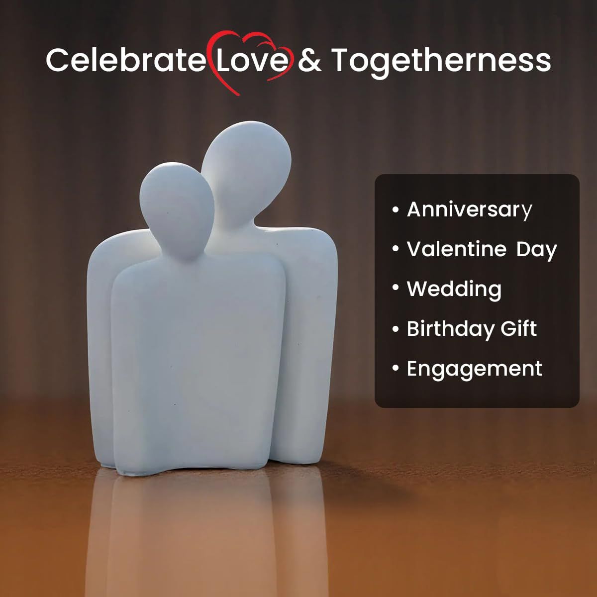 - This showpiece is highly durable. Couples are wrapped very carefully most superior quality built to last longer and protect your loving memories that adds charm to any living room decor, bedroom, bookshelf, mantel, TV cabinet, shelf, nightstands & table.