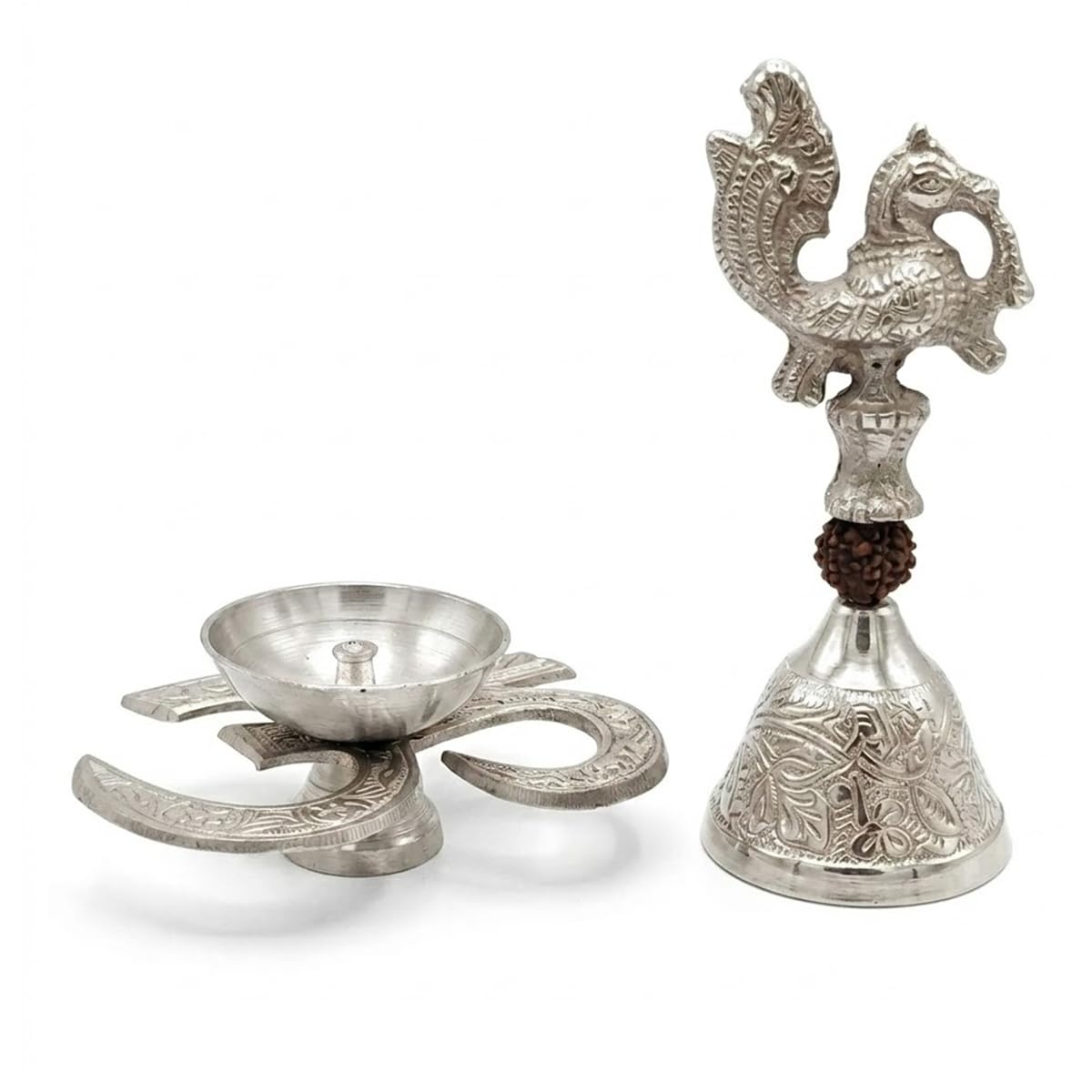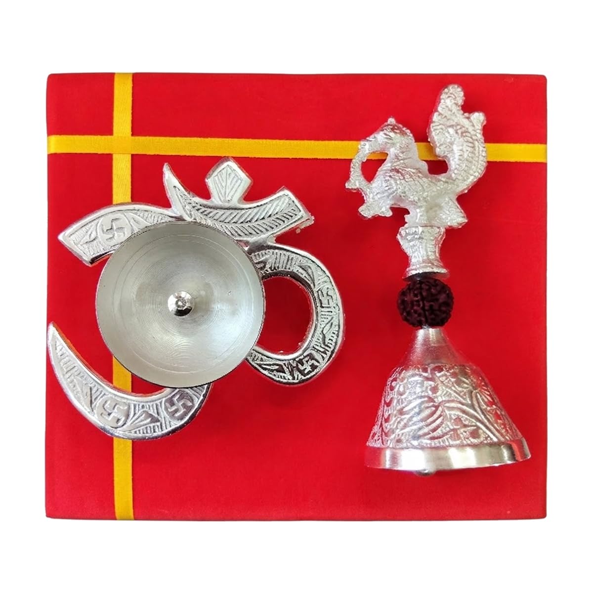 German Silver OM Diya and Bell Set with Gift Box | Return Gift Item