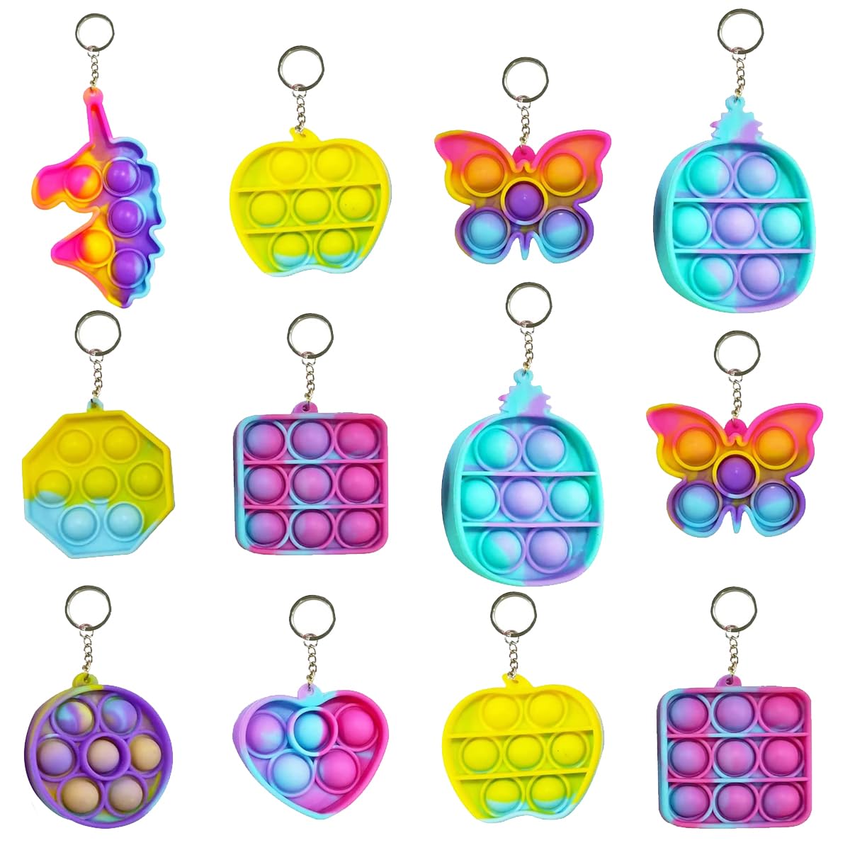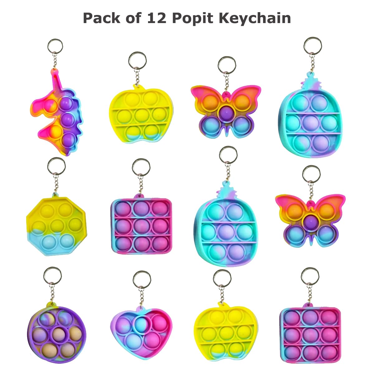 - Sale Package: Pack of 12 Pop It Keychains.