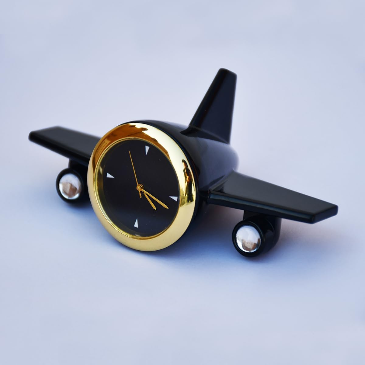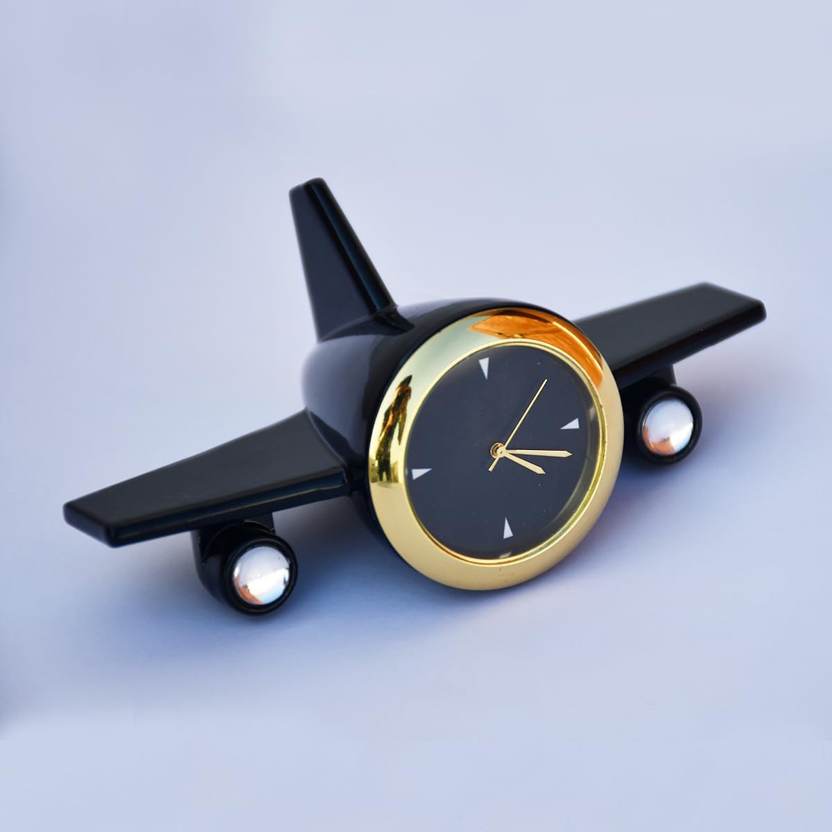 - Material: Metal. Decorative airplane clock showpiece adds a unique touch to your brother's room or office desk.