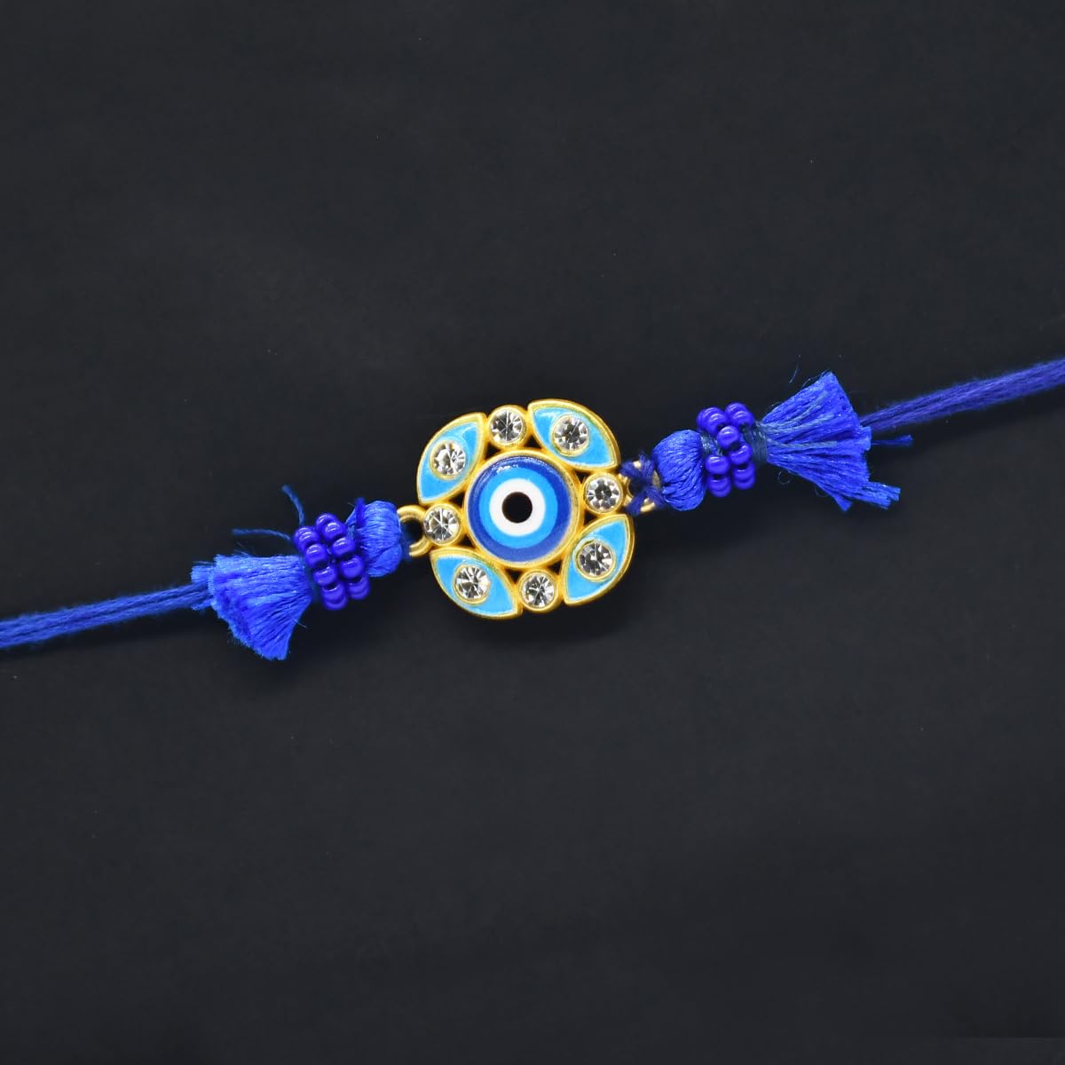 - Stylish Evil Eye Rakhi design perfect for Bhaiya or elder brother, combining traditional and modern elements.