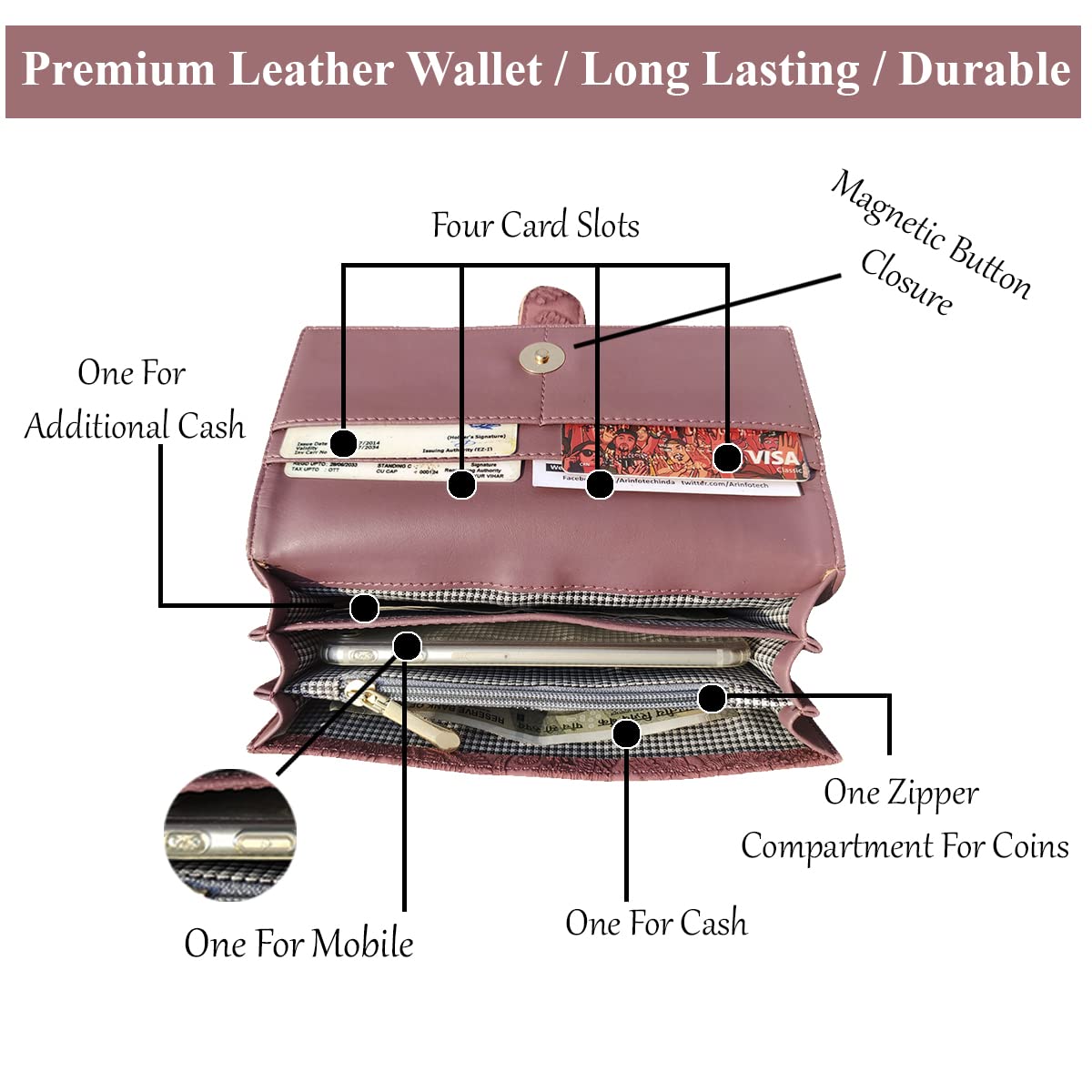 - Wallet Capacity - There are four compartments with large storage capacity that easily carries your basic essentials like cash, cards, keys, and some makeup. There is a separate space for your mobile.