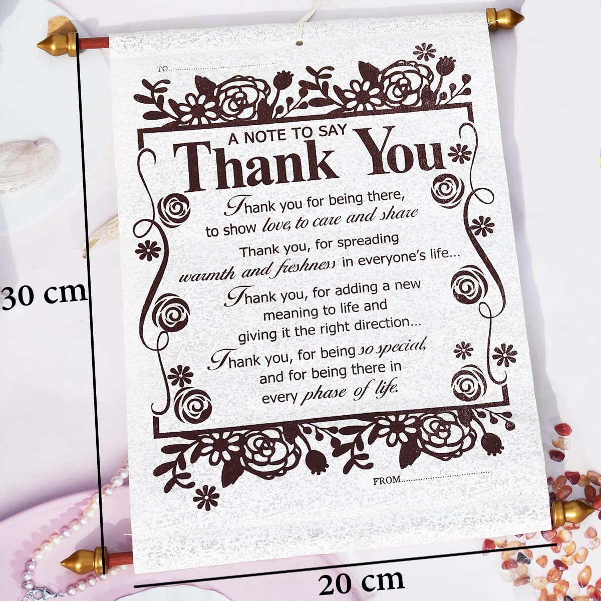 - Scroll Card: Thank you message card Height 30 cm X Length 20 cm. Beautiful thank you scroll card with thank you message. This is a beautiful way to say thank you.