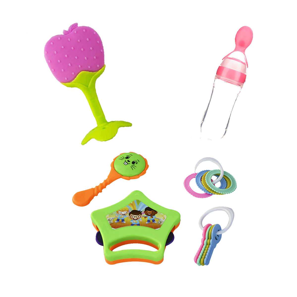 - Cute And Effective - The Individual Toy pieces in the Rattle Set are extremely Eye-Catching and Colorful and in different designs. Watch Your Baby's Happiness while playing with these Little Toys And Develop his senses for identifying Colors and Textures.