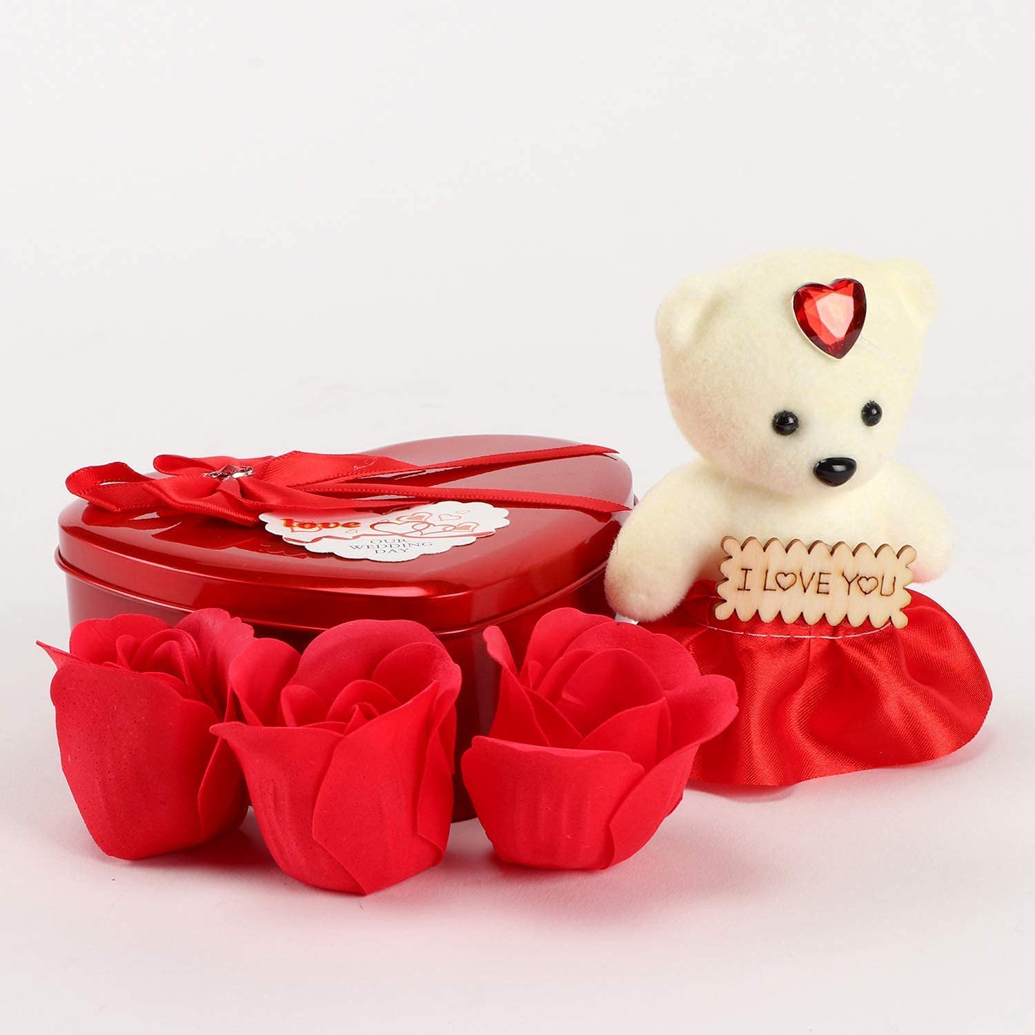 - Package Contents: 1 Heart Shape Box with Teddy and Ring with Carry Bag.