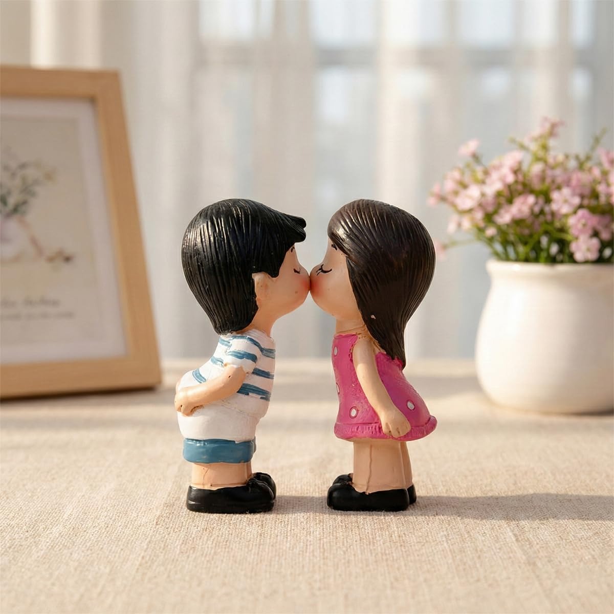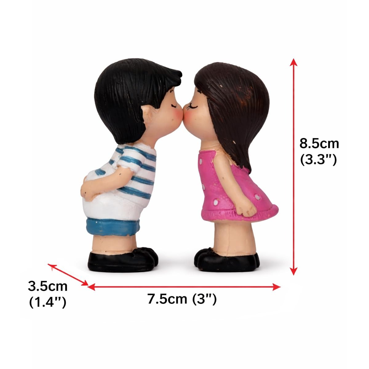 - Showpiece: Material: Resin. Color: Multicolor. Dimension: H 8.5 cm x W 3.5 cm x L 7.5 cm. No odor, non-toxic and harmless. Romantic kissing couples miniature gift for lovers.