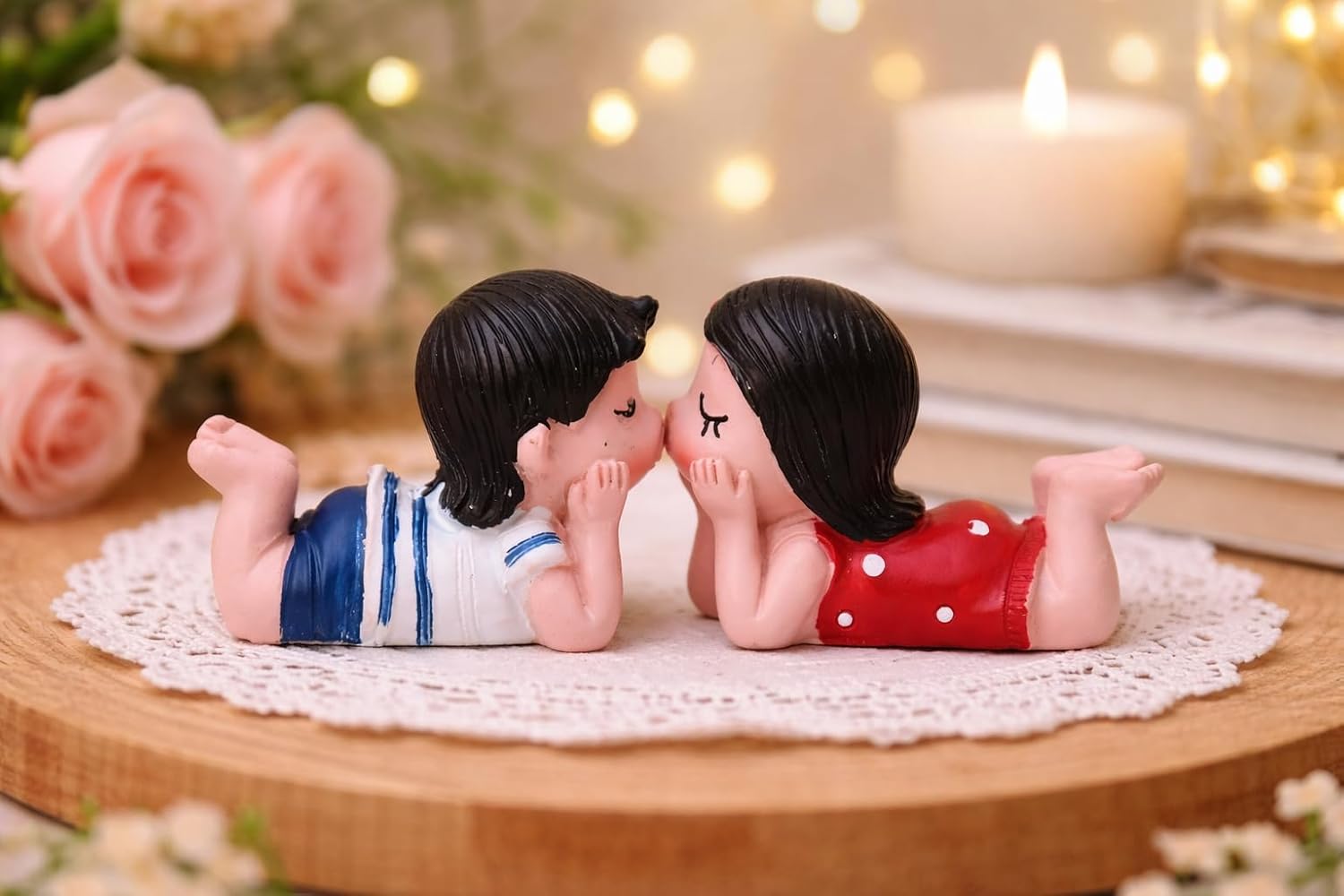- Kissing Couple: Magnetic kissing couple showpiece for kiss day. H 4 cm x L 10 cm x W 2.5 cm. Material: Polyresin.